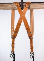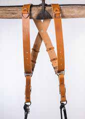 The Bridle leather DOUBLE SLINGER  is made from U.S. native steer hides, anchored stainless steel d-rings/hardware (no rust), safety straps for ultimate security and impeccably versatile design make this an essential tool for the modern photographer. Secure your cameras and important gear where it’s most accessible and comfortable—right on you. This leather is strong, waxy and weather-resistant. Pair the Camera leash with the Double Slinger to create a 3 camera setup or add the ability to attach and use other accessories.